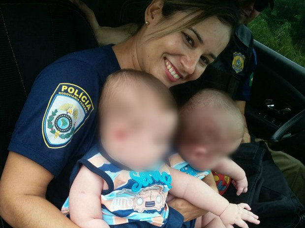 A policial que aparece na foto é Vivian Andrade Correia disse ao G1 que se emocionou ao encontrar os bebês no local do acidente.