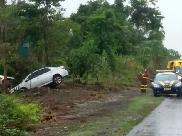 Carro bateu em árvore após aquaplanar na BR-163 na sexta-feira Santa. Gêmeos de 5 meses estavam em cadeirinha e não tiveram ferimentos.