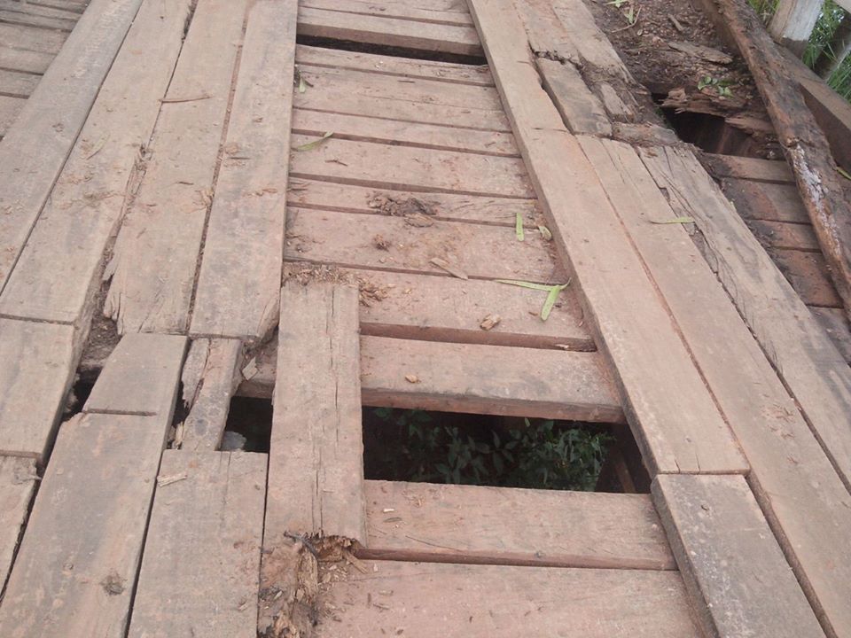 A construção precária põe em risco quem precisa transitar pela ponte