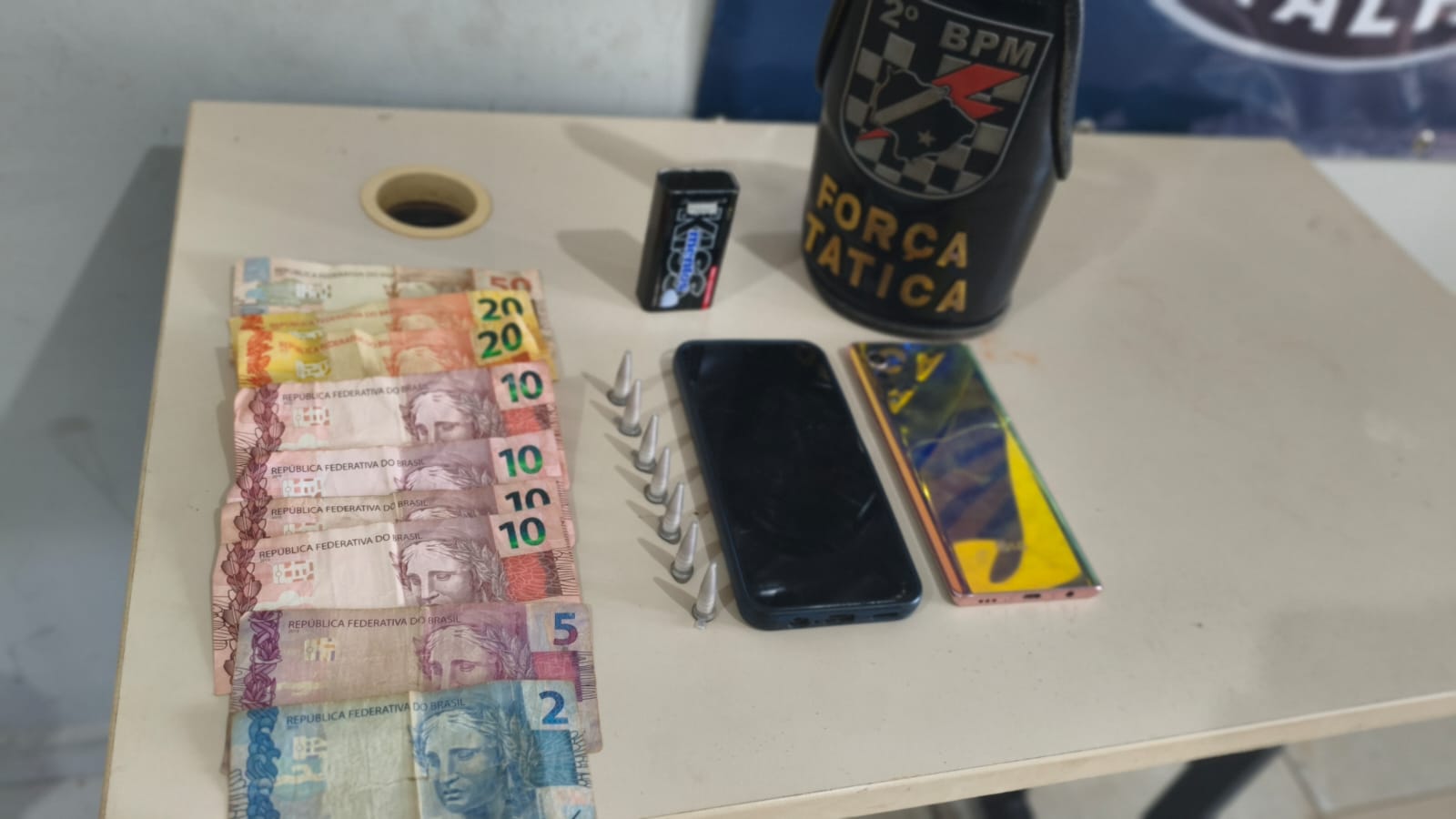 Durante patrulhamento ostensivo, os policiais realizaram a abordagem do suspeito e, na busca pessoal, encontraram sete pinos de cocaína, além de uma quantia em dinheiro. Questionado, o indivíduo confessou que realizava a venda da droga no local.