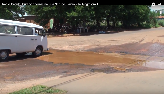 Hoje (04), a reportagem esteve presente no Bairro Vila Alegre, para averiguar denúncia de um buraco de grandes proporções, na Rua Netuno, esquina com a Rua Bom Jesus, há muito tempo acarreta prejuízos a veículos e causa acidentes, representando perigo para todos que trafegam pela referida rua.