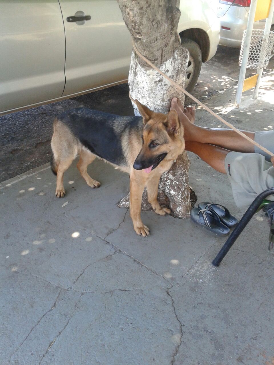 É uma cadela da raça pastor alemão que demonstra ser bem cuidada, mas que não trazia consigo nenhuma coleira ou outro tipo de identificação sobre os verdadeiros donos.