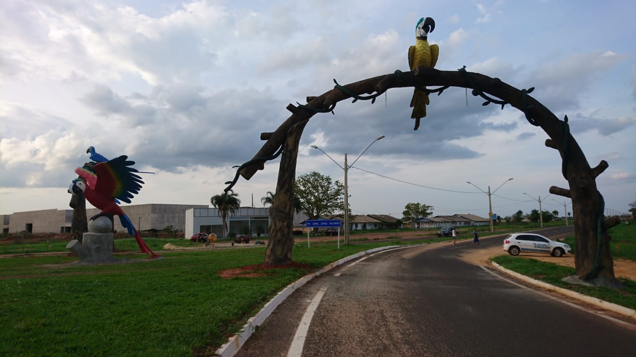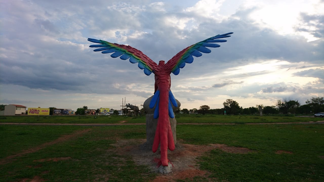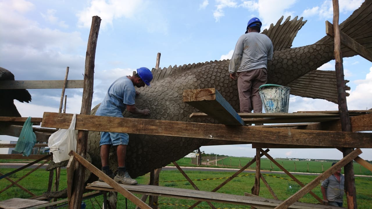 A obra é composta por dois portais com araras pousadas no topo, uma arara vermelha de asas abertas entre os aros que já estão finalizadas e na rotatória da BR-158 estão sendo construídas três esculturas de Tucunarés que devem ser finalizadas nos próximos 20 dias.