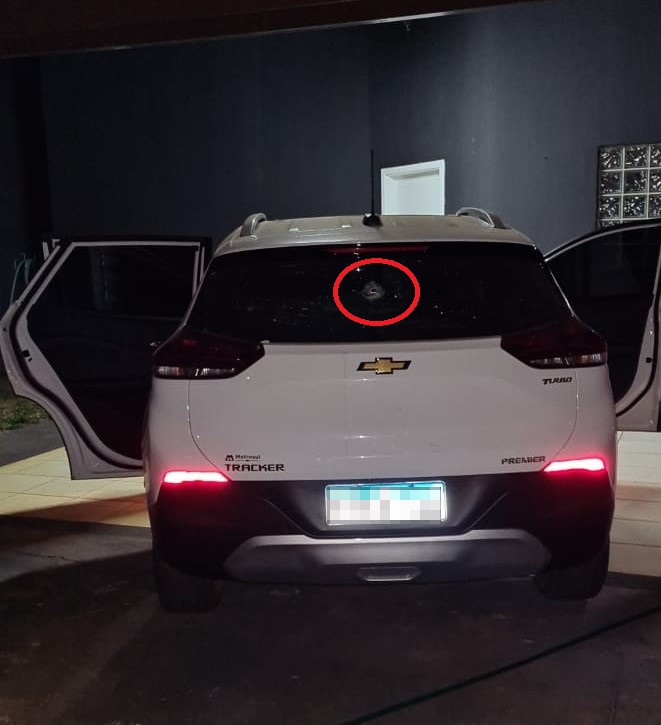 A Polícia Militar foi acionada na madrugada de hoje (16), por volta das 1h15, após o seu portão e o para-brisa dianteiro de um veículo serem atingidos por arma de fogo, na Av. Raphael de Haro no Jardim das Oliveiras.
