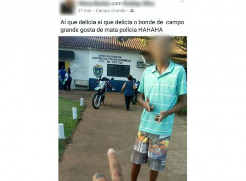 A legenda da imagem postada no Facebook dizia “Ai que delícia, ai que delícia, o bonde de campo grande gosta de mata polícia HAHAHA” (sic). Em poucos minutos a fotografia chegou aos grupos dos policiais militares, que reconheceram os jovens e iniciaram buscas na região.
