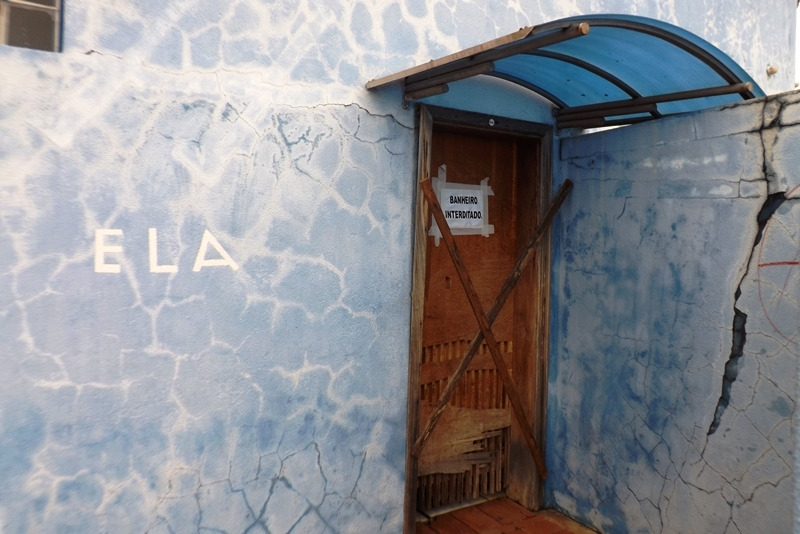 Um funcionário, que preferiu não se identificar, temendo represálias da administração, afirmou que o prédio está com problemas estruturais e o piso do banheiro estaria afundando e as paredes estão com rachaduras (como mostra a foto). “Com certeza é uma obra mal feita, mas as pessoas também não podem ficar sem o banheiro público”, disse.