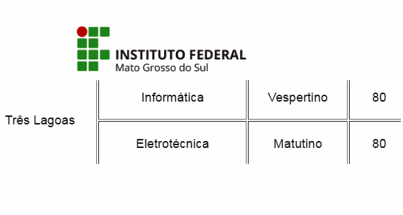 Vagas – São ofertadas 1.600 vagas nos campi Aquidauana, Campo Grande, Corumbá, Coxim, Dourados, Jardim, Naviraí, Nova Andradina, Ponta Porã e Três Lagoas.