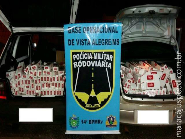 A Polícia Militar Rodoviária Estadual da Base Operacional de Vista Alegre, distrito pertencente ao município de Maracaju, apreendeu na noite de ontem (18), às 22:00h na Rodovia MS 164, KM 015 (perímetro urbano do distrito), dois veículos carregados de pacotes de cigarros de origem estrangeira.