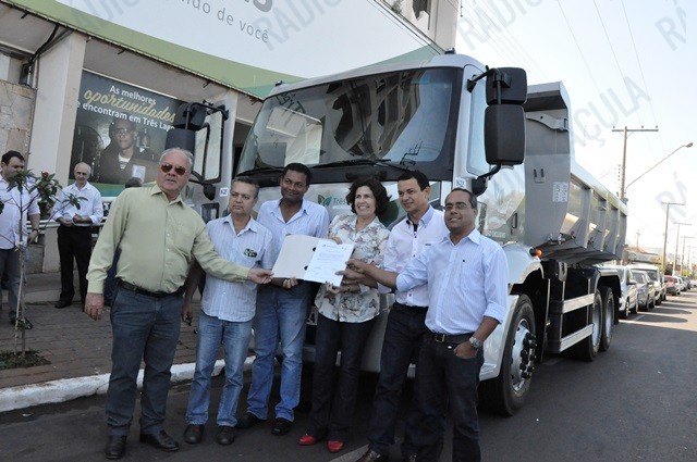 A prefeita Marcia Moura (PMDB), em solenidade realizada em frente ao prédio da sede da Prefeitura de Três Lagoas, na Avenida Capitão Olyntho Mancini, Centro, na manhã desta quarta-feira (10), assinou termo oficial de entrega das chaves de um Caminhão Ford Cargo 2429, novo e totalmente equipado, à Secretaria Municipal de Infraestrutura, Transporte e Habitação.
