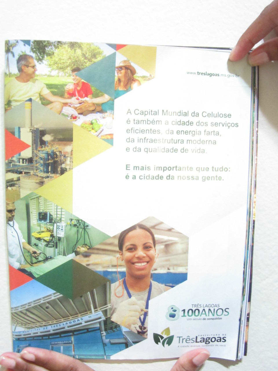 A edição de nº 2416 – ano 46 nº10 de 11 de março de 2015 da revista Veja, publicação de ampla circulação nacional apresenta na página 81 um anúncio publicitário de página inteira da Prefeitura Municipal de Três Lagoas com o seguinte texto: “A Capital Mundial da Celulose é também a cidade dos serviços eficientes, da energia farta, da infraestrutura moderna e da qualidade de vida. E mais importante que tudo: é a cidade da nossa gente”.