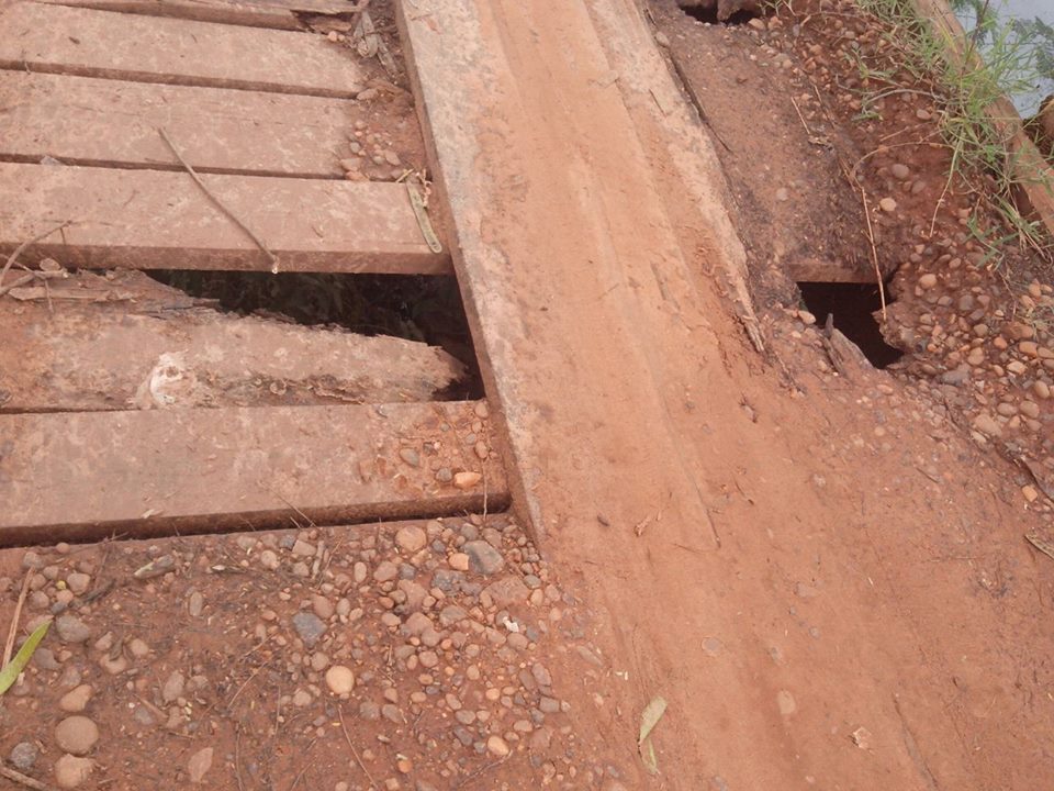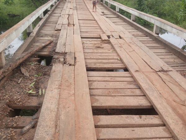 A única opção para chegar à Cidade era se arriscar entre os inúmeros buracos da ponte de 12 metros (Foto: Arquivo Rádio Caçula)