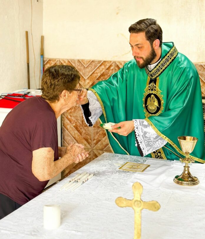 Um pedido simples, mas carregado de amor, fé e significado marcou a comemoração dos 95 anos de Ida Carola Gall, em Dourados. Como presente de aniversário, a avó pediu que seu próprio neto, o Padre Giovani Gall, celebrasse uma Santa Missa em sua casa… desejo atendido neste domingo (08).