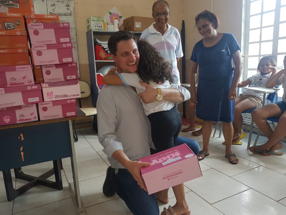 Em parceria com a empresa Kidy foram entregues muitos pares de sapatos para a criançada.