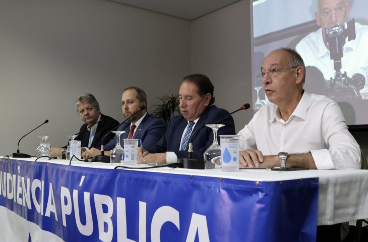 Representando o governador Eduardo Riedel, os secretários Hélio Peluffo (Infraestrutura e Logística) e Jaime Verruck (Meio Ambiente, Desenvolvimento, Ciência, Tecnologia e Inovação) participaram da audiência pública e defenderam a importância estratégica da ferrovia para Mato Grosso do Sul.