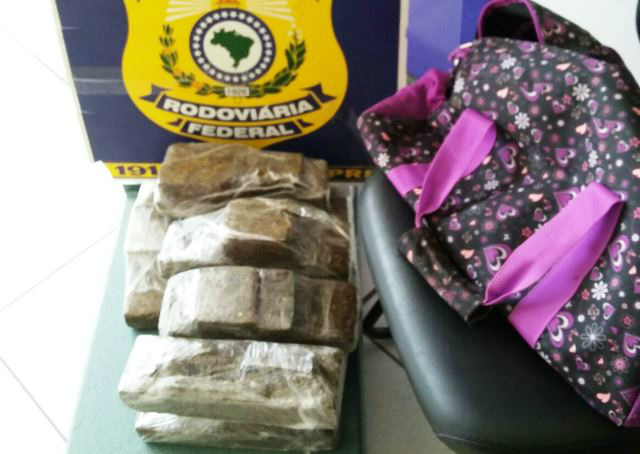 Diante da fundada suspeita, os policiais rodoviários federais vistoriaram as mochilas da adolescente e localizaram 10 pacotes de maconha.