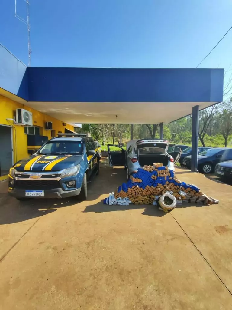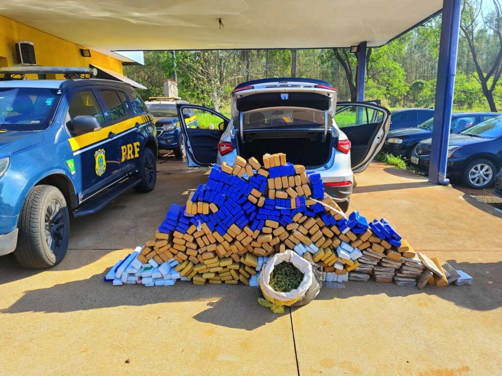 Droga estava em carro com placas clonadas e registro de furto em Minas Gerais, segundo a Polícia Rodoviária Federal
