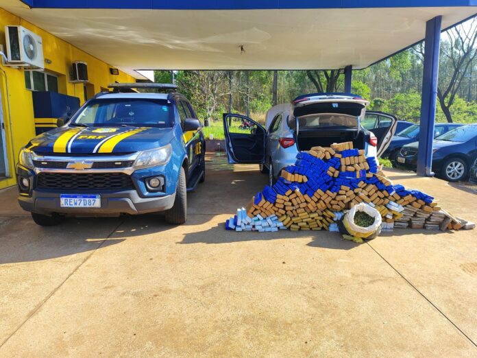 Droga estava em carro com placas clonadas e registro de furto em Minas Gerais, segundo a Polícia Rodoviária Federal