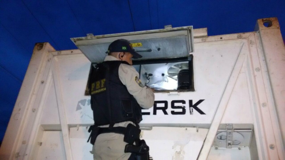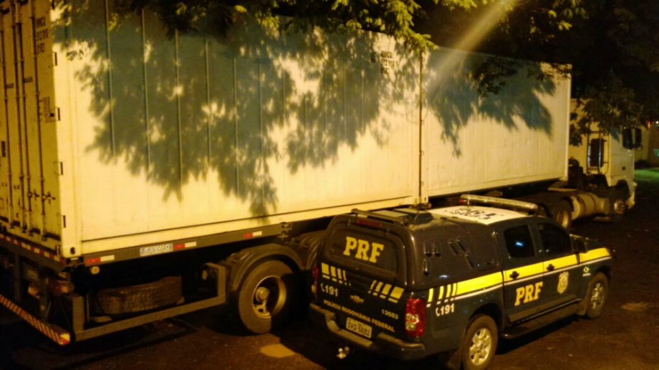 Às 20:00h do dia 16/02/2015, no km 21 da BR 262 em Três Lagoas/MS, em frente à Unidade Operacional da PRF, foi abordado o caminhão Volvo/FH, placas de Luziânia/GO, tracionando o semirreboque com placa de Itajai/SC, conduzido por L. C., motorista. Durante entrevista ao condutor, os policiais notaram que o mesmo apresentava nervosismo e respondia às perguntas de forma contraditória. A equipe procedeu a uma revista minuciosa no interior do contêiner que estava sendo transportado pelo semirreboque e localizou inúmeras caixas de cigarro de origem estrangeira em seu interior. Após contagem, constatou-se que havia dentro do contêiner 300 caixas de cigarro que totalizou 15.000 pacotes. A carga apreendida tem o valor estimado de R$300.000,00.