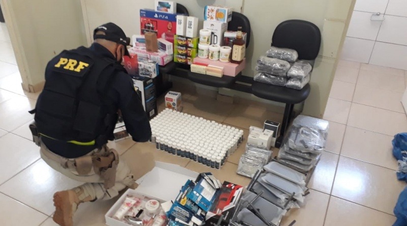 Os carros estavam carregados com diversas mercadorias de origem estrangeira sem documentação fiscal. Entre os itens apreendidos, estavam eletrônicos, cosméticos, cigarros, bebidas e medicamentos que não possuem registro na Agência Nacional de Vigilância Sanitária (Anvisa).