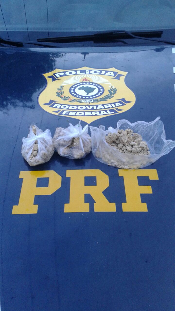 Em virtude da fundada suspeita verificada, a equipe procedeu à revista no interior da bagagem da ocupante e flagrou 300 gramas de crack distribuídos em pedras prontas para a comercialização. Questionada sobre a procedência da droga, a passageira informou que a droga foi deixada próxima de uma lixeira localizada na antiga rodoviária de Campo Grande, que ela iria deixar o entorpecente próximo da lixeira da rodoviária de Água Clara, que não sabia que a encomenda era droga e que não iria receber nenhum tipo de remuneração pelo trabalho.