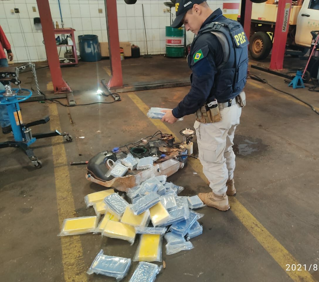 Os agentes suspeitaram do trio, realizaram buscas no veículo e localizaram escondido no tanque de combustível uma grande quantidade de drogas que após pesagem totalizou 50 kg de entorpecente.