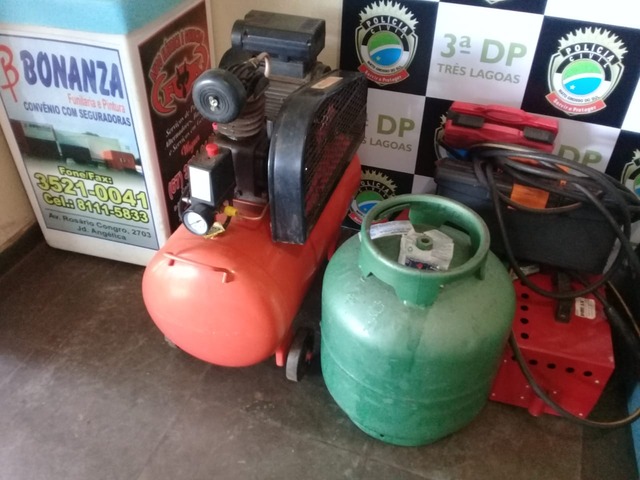 Entre os materiais apreendidos estavam um compressor, um botijão de gás, um aparelho de som e diversas ferramentas. Os produtos foram encaminhados para a delegacia para os devidos procedimentos de devolução ao verdadeiro dono.