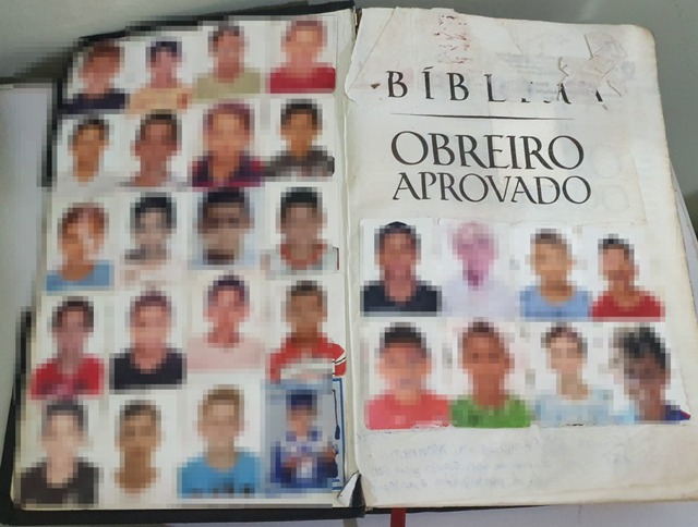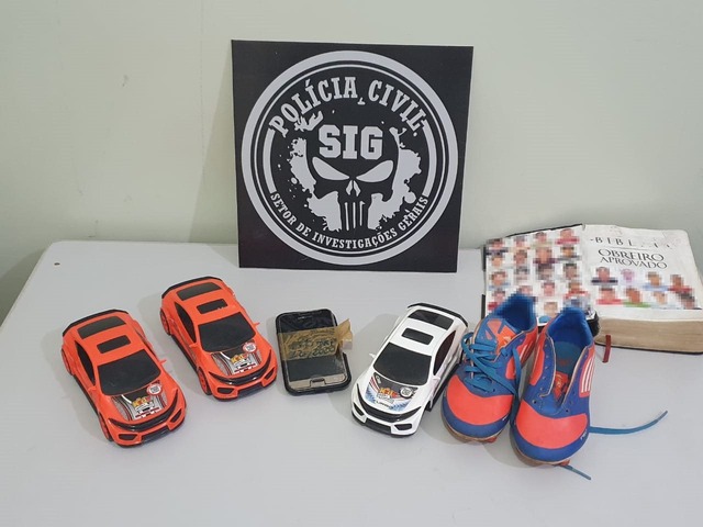 Além do celular, a polícia ainda apreendeu outros objetos entre eles: chuteiras infantis, carrinhos de brinquedo e a Bíblia com as fotos dos garotos com idades entre 7 e 12 anos.
