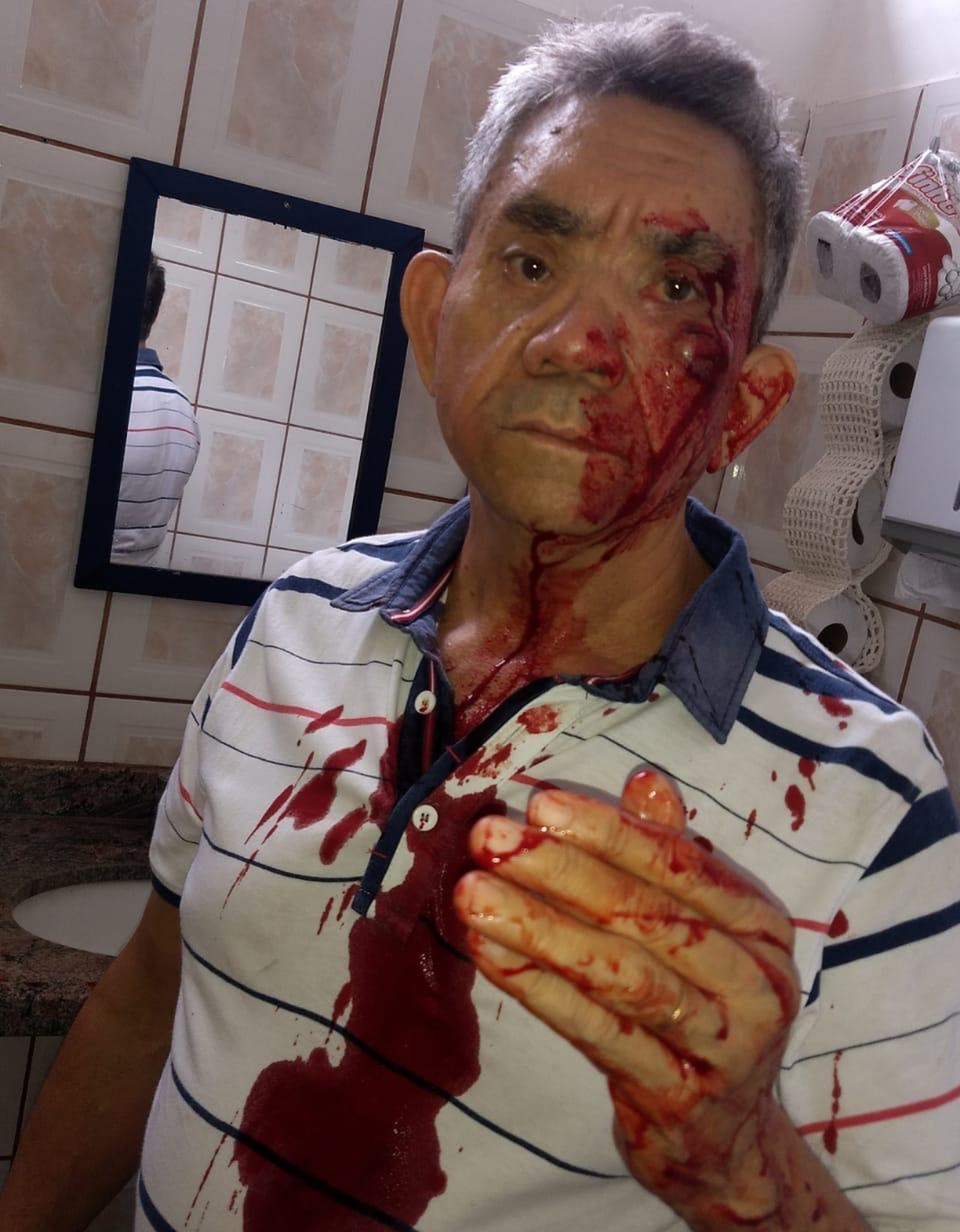 Paulo Rafael Procópio, de 62 anos, ficou com o rosto ensanguentado após episódio de violência na sala de aula, em Lins (SP). Professor e um cuidador também foram feridos por aluno em outra escola da cidade