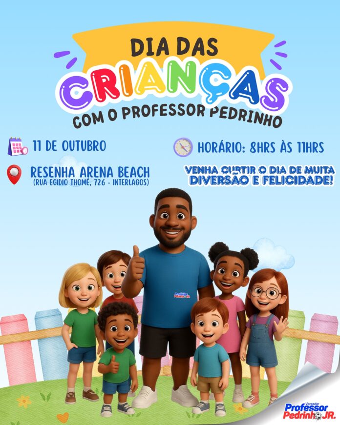“Queremos ver o sorriso de cada criança estampado no rosto e mostrar que elas são prioridade. Será um dia leve, com muito carinho e diversão”, declarou o Professor Pedrinho Jr., que tem se destacado por ações voltadas à educação e bem-estar das crianças no município.