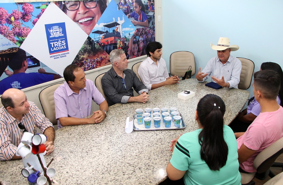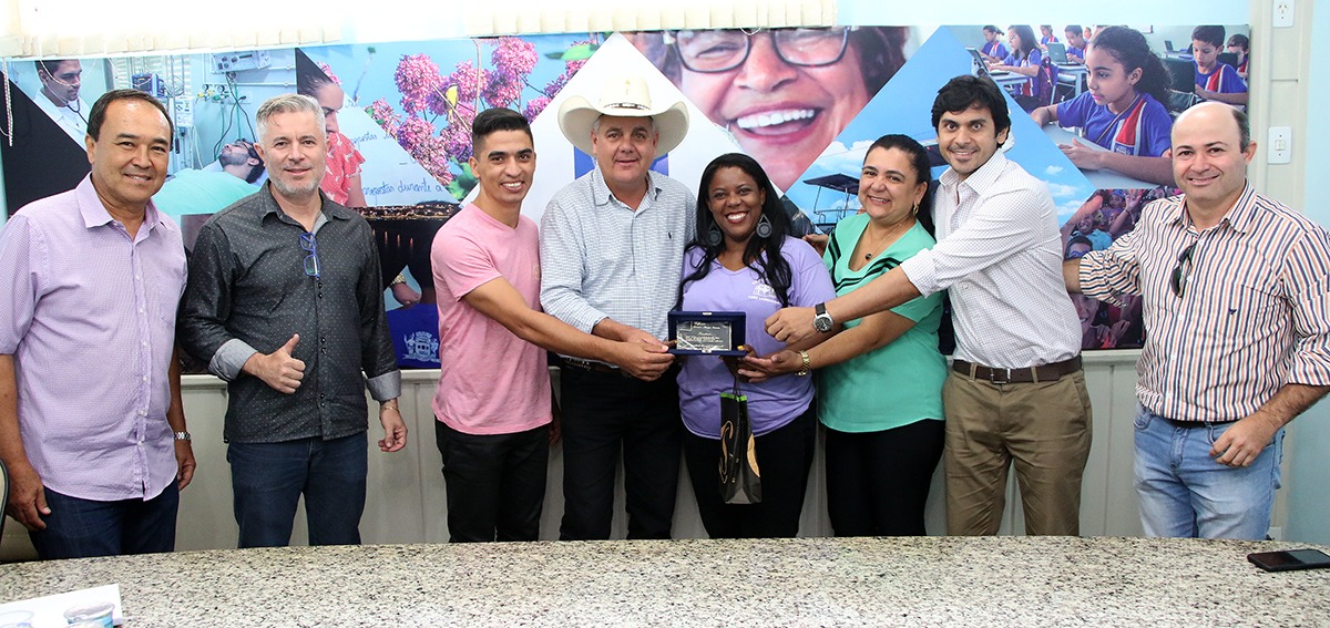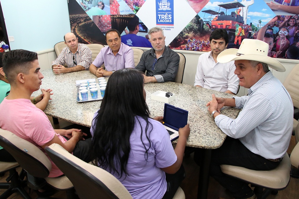 O Prefeito de Três Lagoas, Angelo Guerreiro, acompanhado de seu vice Paulo Salomão e de alguns dos seus secretários municipais, recebeu em seu gabinete, na manhã desta sexta-feira (26), o diretor Jerferson Martins e a professora Rosenir Araújo Gomes, da Escola Municipal “Olyntho Mancini”, para homenageá-los com uma placa pelo projeto “Sussurrofone”, divulgado em rede nacional nesta semana.
