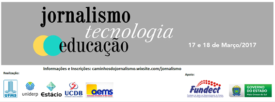 Nos dias 17 e 18 de março, o evento “Jornalismo, Tecnologia e Educação” propõe a discussão e reflexão sobre o impacto das mídias móveis e sociais no exercício profissional e no ensino de jornalismo. O encontro é uma promoção conjunta das universidades: UFMS, UCDB, Estácio, Uniderp e AEMS e pretende reunir professores, alunos e jornalistas do estado em Campo Grande – Mato Grosso do Sul.
