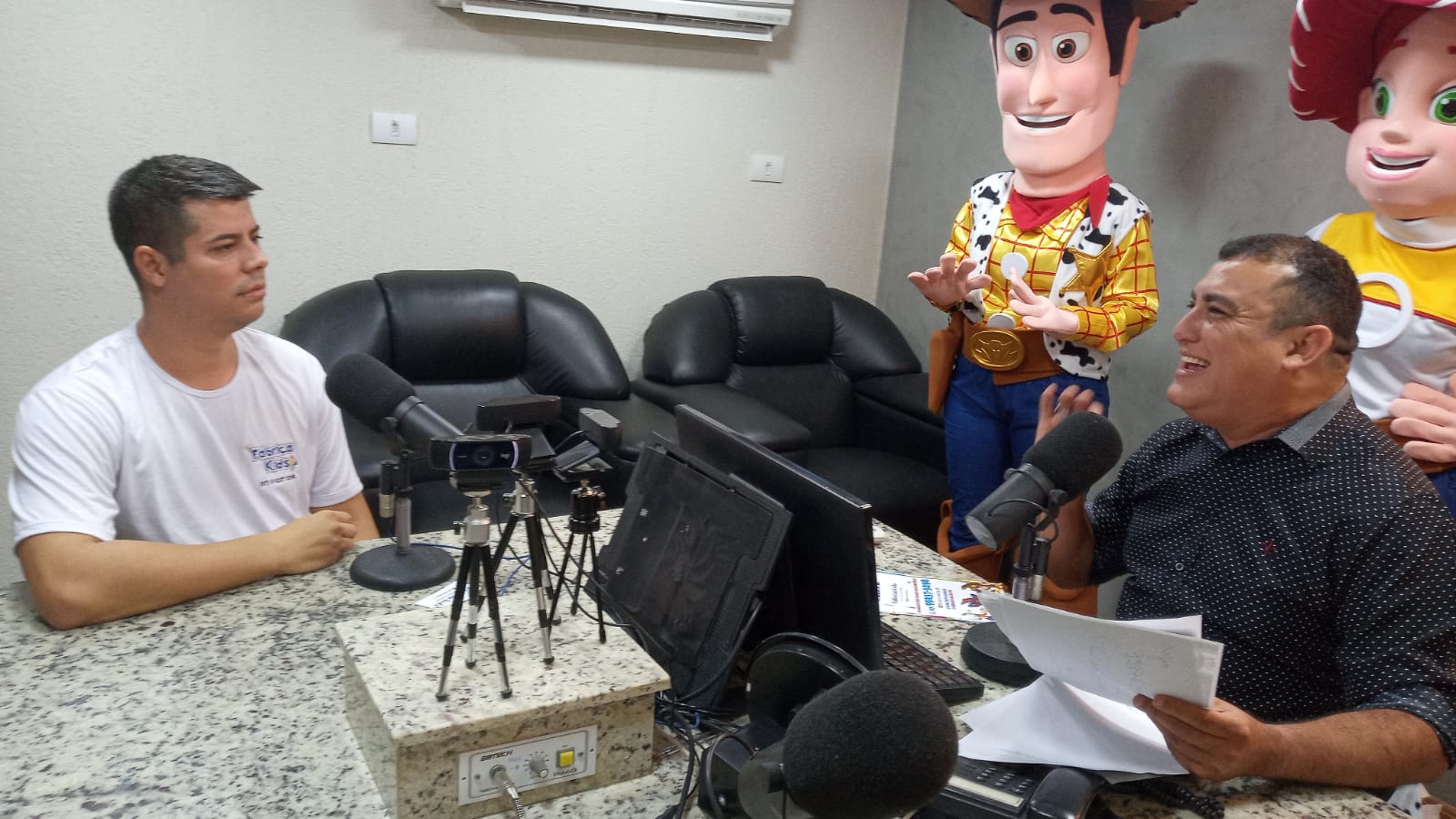 TRÊS LAGOAS – Claudinho Pereira, colunista social da Caçula FM e apresentador do Programa Estrelas em Foco recebeu neste sábado (16), uma visita pra lá de especial: a Fábrica Kids, empresa especializada em personagens infantis.