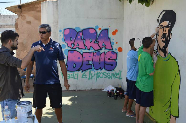 Os adolescentes da UNEI ficaram entusiasmados com a amostra profissional do grafiteiro Joelson Alves dos Santos que além de apresentar sua profissão, ensinar técnicas de grafitti, contribuiu com os desafios e curiosidades do seu mercado de trabalho.