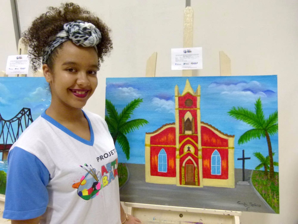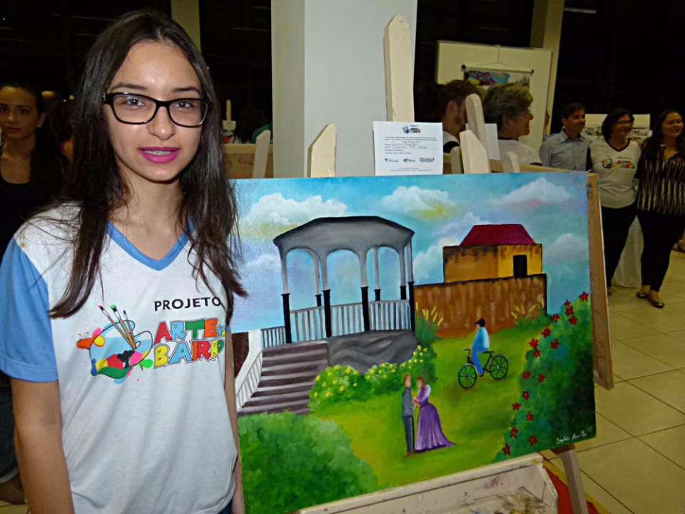 A estudante Sofia Arantes, de 15 anos, pintou a imagem de pessoas caminhando próximas ao coreto da praça. Segundo ela, no início foi difícil imaginar todas as cores e transmiti-las para a tela, mas como Sofia diz ser apaixonada por arte, logo conseguiu vencer essa barreira e transferiu toda a sua criatividade para a placa de celulose. “Eu sempre gostei de pintar, principalmente aquilo o que eu sinto. Esse projeto acabou sendo muito importante, porque sou apaixonada por arte e aqui é onde eu consigo expressar isso”, disse Sofia.