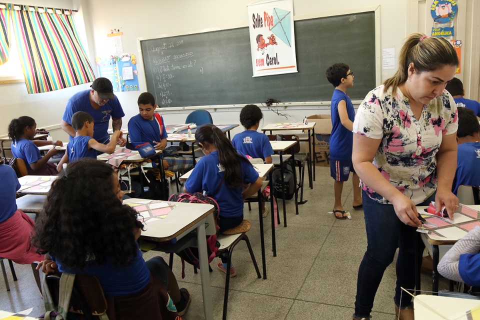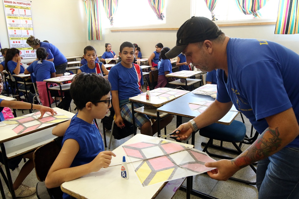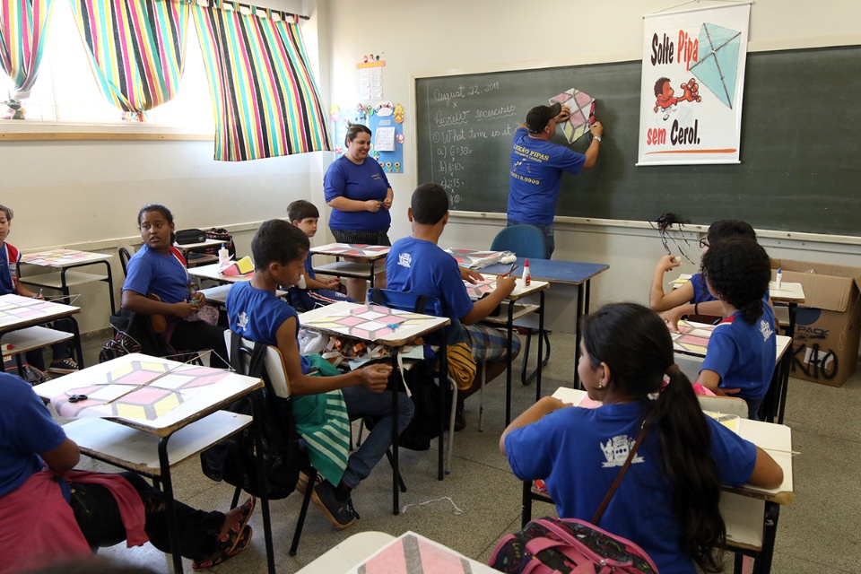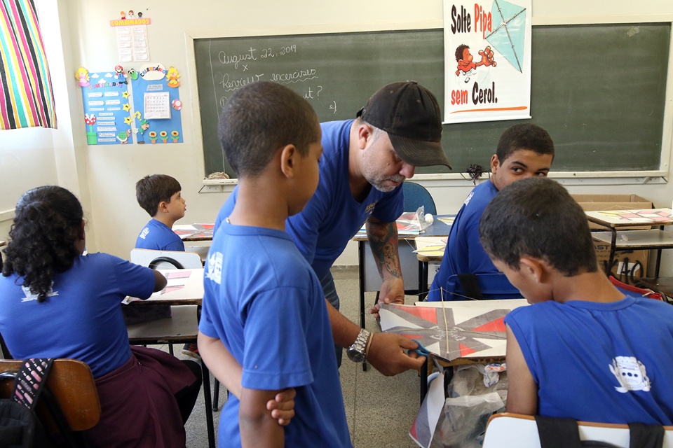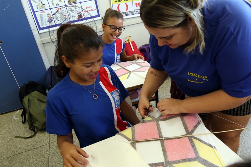 Segundo o Professor de Educação Física, o projeto nasceu ao ver as crianças fazendo suas pipas com folhas de caderno no pátio da escola.