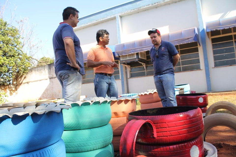 O secretário municipal de Meio Ambiente e Agronegócio, Celso Yamaguti, acompanhado de sua equipe técnica, visitou nesta semana um projeto da Escola Estadual “Fernando Corrêa” que visa reaproveitar pneus automotivos para fazer uma horta para a escola, sendo que dos pneus utilizados, 200 foram doados pela Secretaria Municipal de Meio Ambiente e Agronegócio (SEMEA) e a terra para plantio, pela Secretaria Municipal de Infraestrutura, Transporte e Trânsito (SEINTRA).