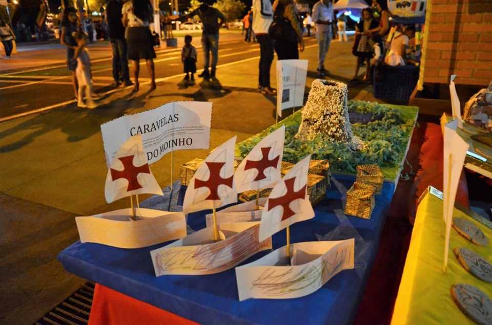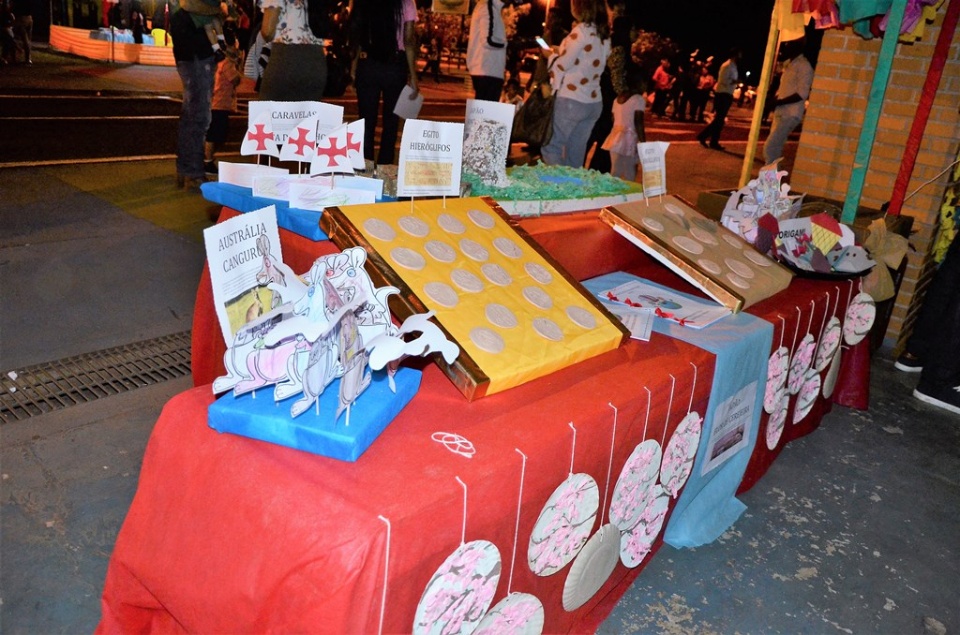 Houve um momento em que os alunos levaram alimentos típicos de cada país e fizeram a feira gastronômica, para que os colegas pudessem aprender mais sobre os locais que estavam visitando.