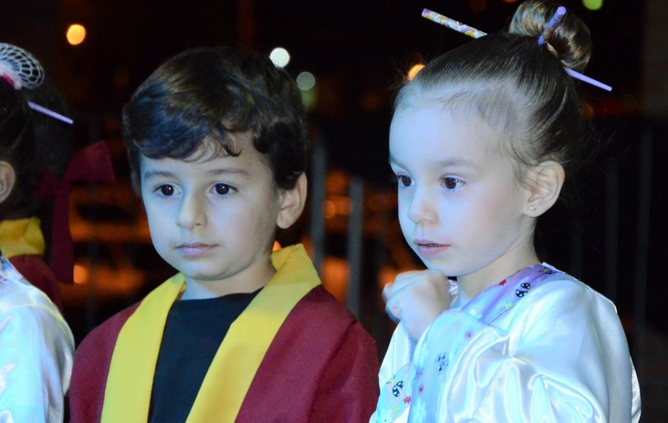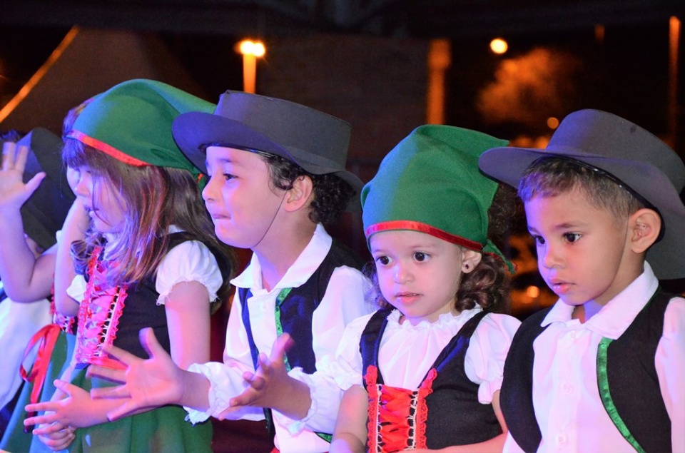 As 250 crianças apresentaram músicas que remetiam às culturas de diversos países, que foram estudados por eles em sala de aula.