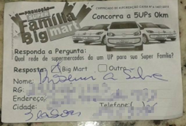 A promoção Super Família Big Mart foi um sucesso de público e com mais de 160 mil cupons concorrendo, a cliente, Rosemir Silva foi agraciada com um VW/UP 0 km durante o sorteio que aconteceu no inicio da tarde deste sábado (9) na loja um, localizada na Avenida Clodoaldo Garcia.