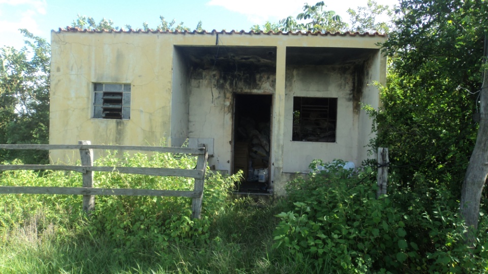 As embalagens, algumas com restos de agrotóxicos constituídos de vasilhas plásticas estavam dentro de um pequeno barraco de alvenaria e espalhadas pela propriedade, com riscos de contaminação do solo.