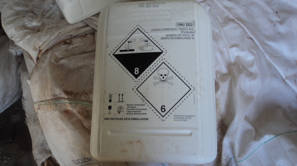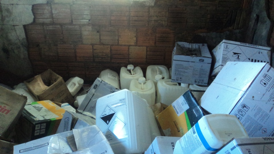 O material estava exposto ao mau tempo e não havia rótulos de risco, bem como livre acesso de pessoas e animais ao local. A destinação das embalagens dos produtos perigosos contrariava as normas técnicas e a legislação ambiental, bem como a bula dos próprios produtos.