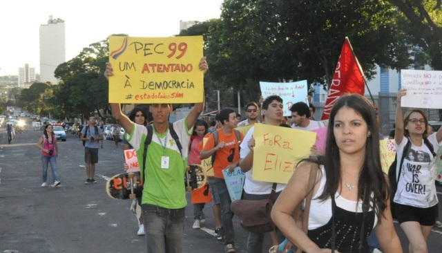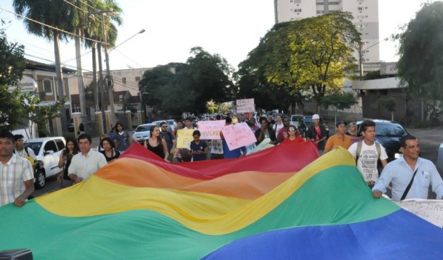Durante o trajeto, os manifestantes gritavam contra a homofobia e em defesa de relacionamento entre pessoas do mesmo sexo. Os participantes foram até a sede das Promotorias de Justiça, no Jardim dos Estados, para protestar contra o promotor de Justiça Sérgio Harfouche que, segundo eles, usa o cargo público para professar fé dele. Em seguida, voltaram para a praça.
