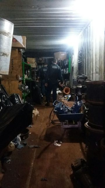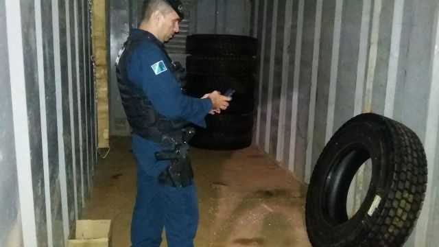 A Polícia Militar foi acionada e enviou uma guarnição da Rádio Patrulha, composta pelo cabo Coto e soldado Alencar, e após coletar o depoimento da vítima, entrou em contato com o proprietário da transportadora, que relatou que do local foram subtraídos dois notebooks, oito pneus de caminhão, dois tambores de óleo, filtros de óleo e embreagem e para ter acesso a estes materiais, os bandidos utilizaram a lixadeira da empresa para romper o cadeado que lacrava o container onde os produtos eram armazenados.