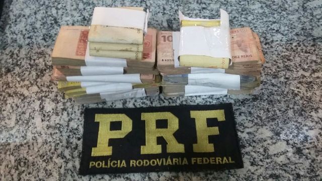 Os policiais revistaram os veículos e encontraram na S10 R$13.645,00 e com o passageiro do Renault havia a quantia de R$810,00.
