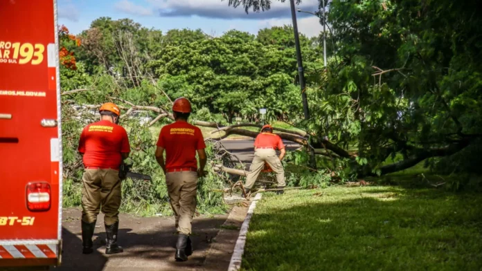 O Corpo de Bombeiros ainda continuam a desobstruir ruas que foram fechadas por árvores que caíram antes e até depois da chuva que atingiu Campo Grande na quarta-feira (4).