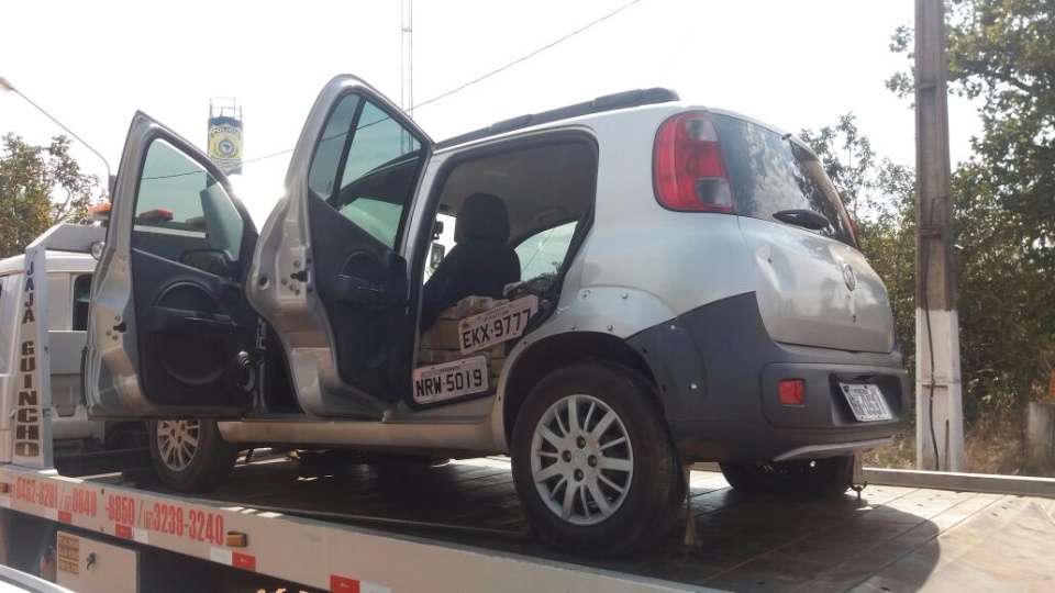 Um veículo Fiat Uno, com restrição judicial e placa adulterada foi encontrado abandonado na cidade e dentro dele havia 455 quilos de maconha, distribuídas em tabletes. O conjunto de placas originais estava dentro do automóvel.