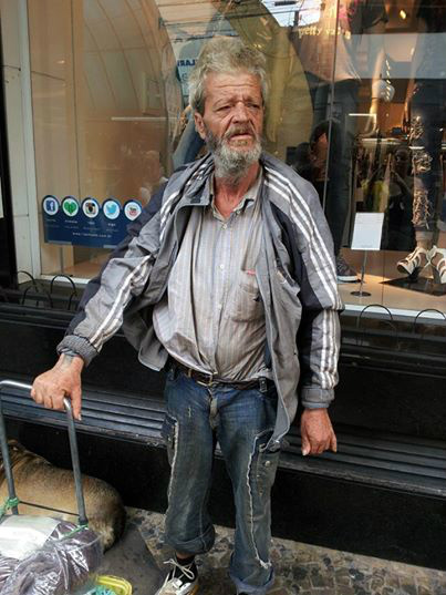 O senhor Roberto mora na rua, não faz mal pra ninguém não bebe e ainda ama os animais !