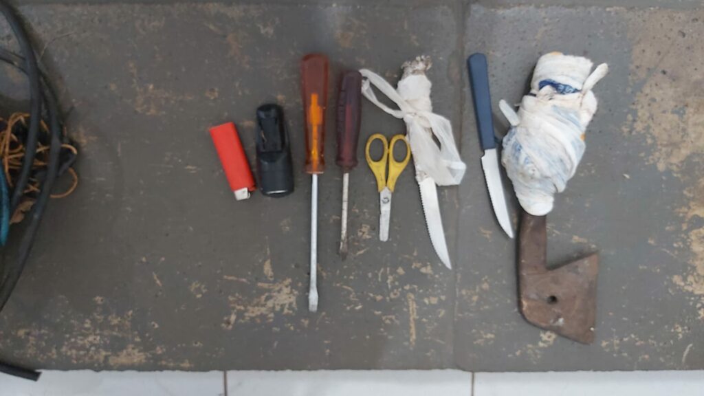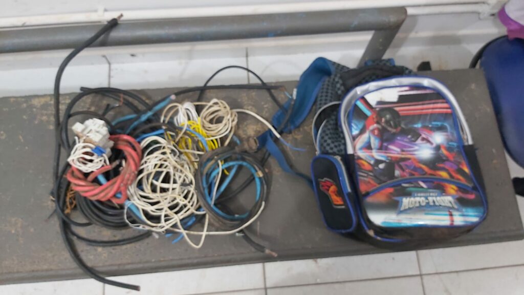 Segundo a solicitante, relatou que teria visualizado dois homens em atitudes suspeitas, invadindo um hotel abandonado, onde saíram do local correndo com uma mochila nas mãos. A equipe policial conseguiu abordar os indivíduos 500 metros depois, na rua Cel Lima Figueiredo, no Nossa Senhora Aparecida, encontrando na mochila de um deles duas chaves de fenda, duas facas de mesa, uma tesoura, uma chave de ferro, uma lanterna e um emaranhado de fios de cobre, pesando 4kg.