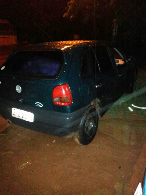 Após a comunicação do crime, a polícia encontrou o carro na frente de uma casa de shows foi quando três pessoas, ao perceberem que seriam abordados, arrancaram com o carro e abandonaram o carro à frente, após passarem em uma poça d’água, fugindo por um matagal.