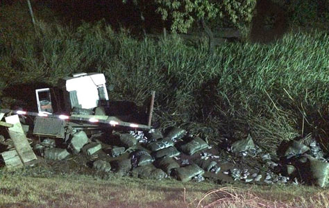 A Receita Federal de Corumbá apreendeu na noite desta quarta-feira (17) aproximadamente 15 toneladas de mercadoria irregular, proveniente da Bolívia. A apreensão foi feita após carreta tombar em estrada vicinal perto da rodovia BR-262, em Corumbá,.